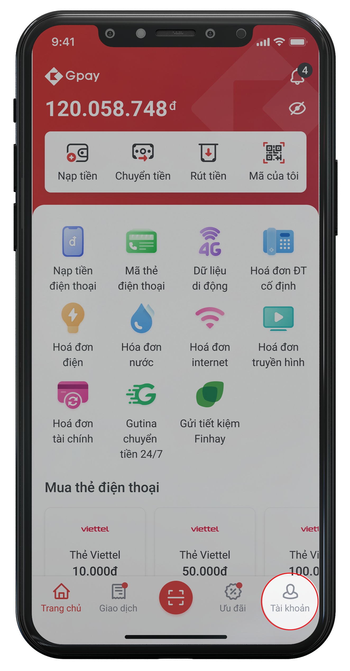 Bước 1: Từ màn hình chính chọn "Tài khoản"