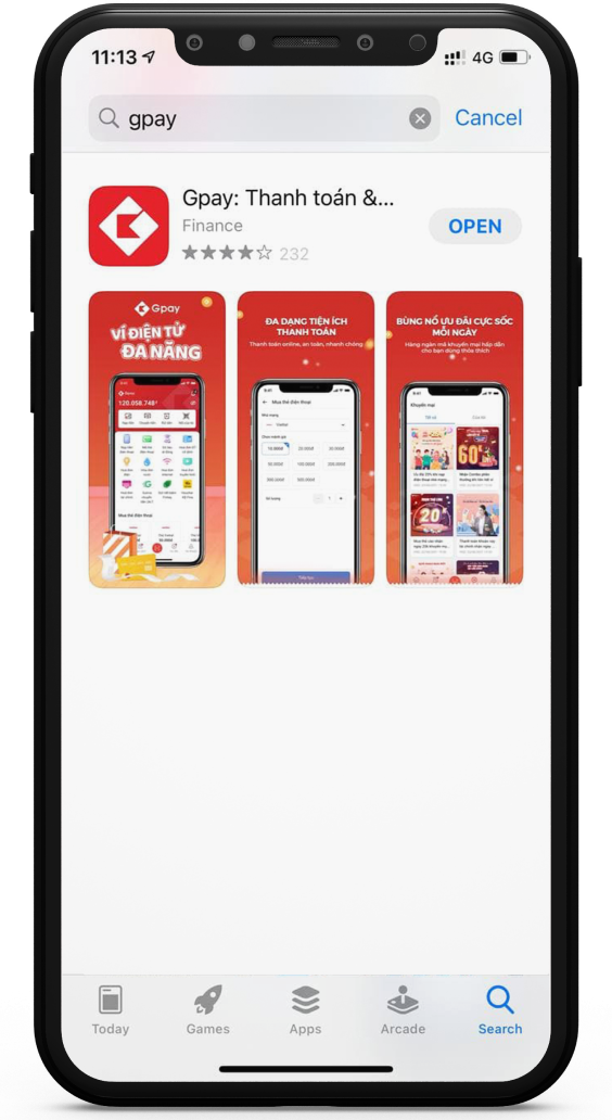 Tải miễn phí bằng cách tìm kiếm ứng dụng Gpay trên App Store hoặc CH Play Store