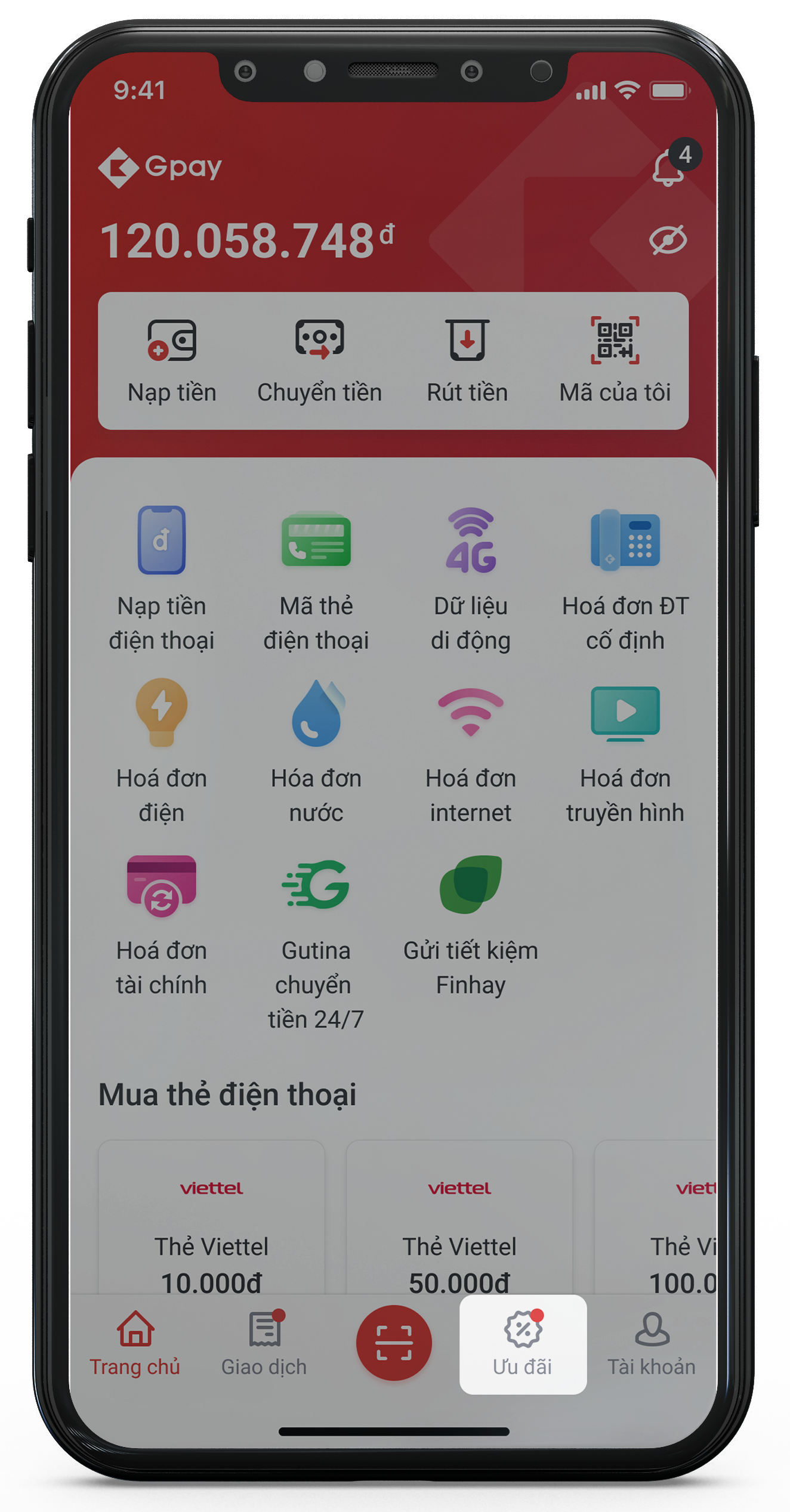 Bước 1: Tại màn hình chính, chọn "Ưu đãi"
