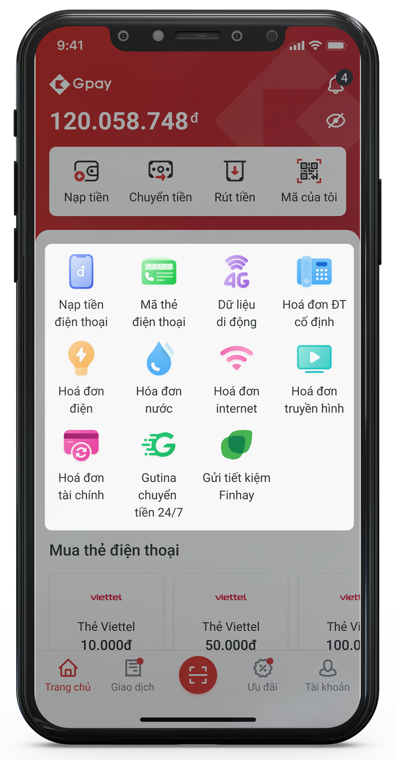 Gpay cung cấp các loại thẻ di động của những nhà mạng nào?