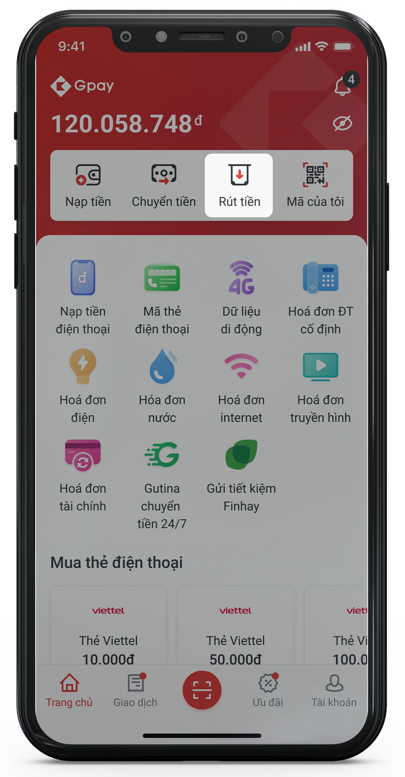 Bước 1: Tại màn hình chính, chọn "Rút tiền"